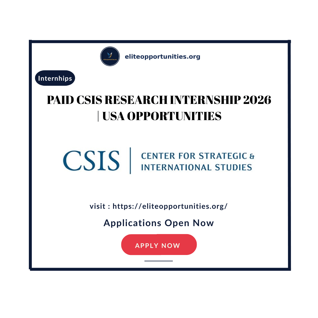The CSIS Research Internship 2026 is an excellent opportunity for students who want to gain hands-on experience in international relations and policy research. With competitive pay, expert mentorship, and exposure to real-world global issues, this internship stands out as one of the best opportunities in the USA.