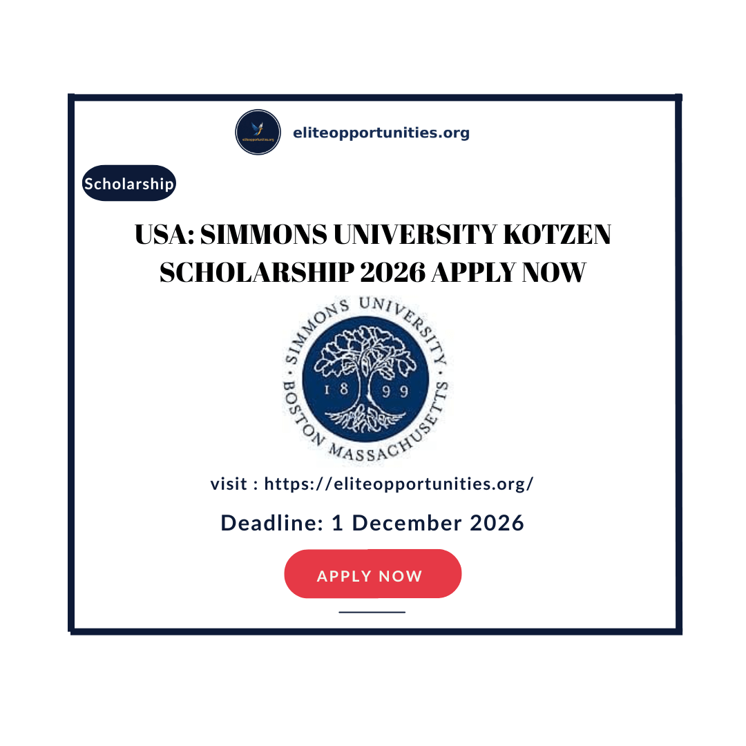 The Simmons University Kotzen Scholarship 2026 is a prestigious fully funded undergraduate scholarship opportunity for international students who wish to pursue higher education in the United States. This scholarship program is designed to support highly motivated, academically outstanding students from around the world by providing full financial coverage for a four-year bachelor’s degree.
